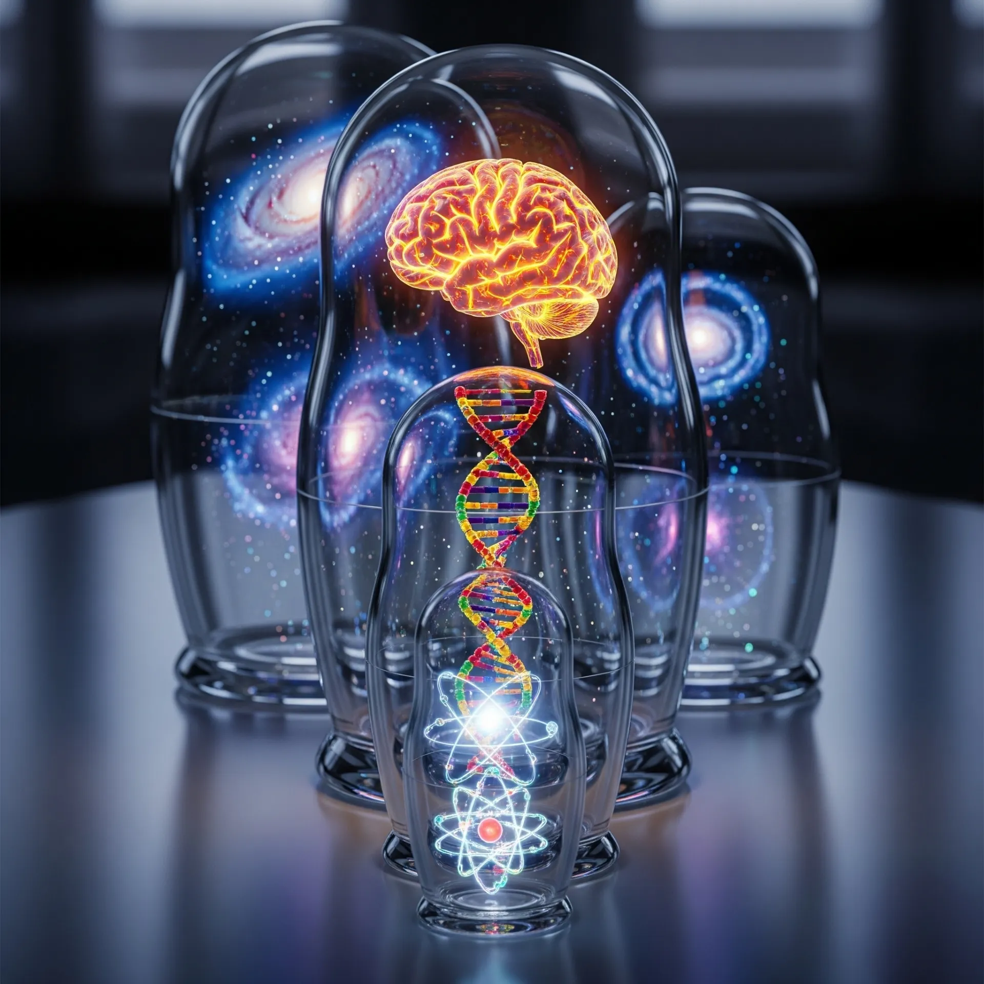 봄은 우주의 구조를 러시아의 전통 인형 마트료시카에 비유하기도 했습니다. 가장 큰 인형을 열면 그 안에 작은 인형이 있고, 그 인형을 열면 더 작은 인형이 끝없이 나오는 것처럼, 우리가 관찰하는 외재적 질서 안에는 더 깊은 내재적 질서가 있고, 그 안에는 또 다른 차원의 질서가 숨어 있다는 것입니다. 즉, 현실은 우리가 상상할 수 있는 것보다 훨씬 더 깊고 다층적인 구조를 가지고 있을지 모릅니다.