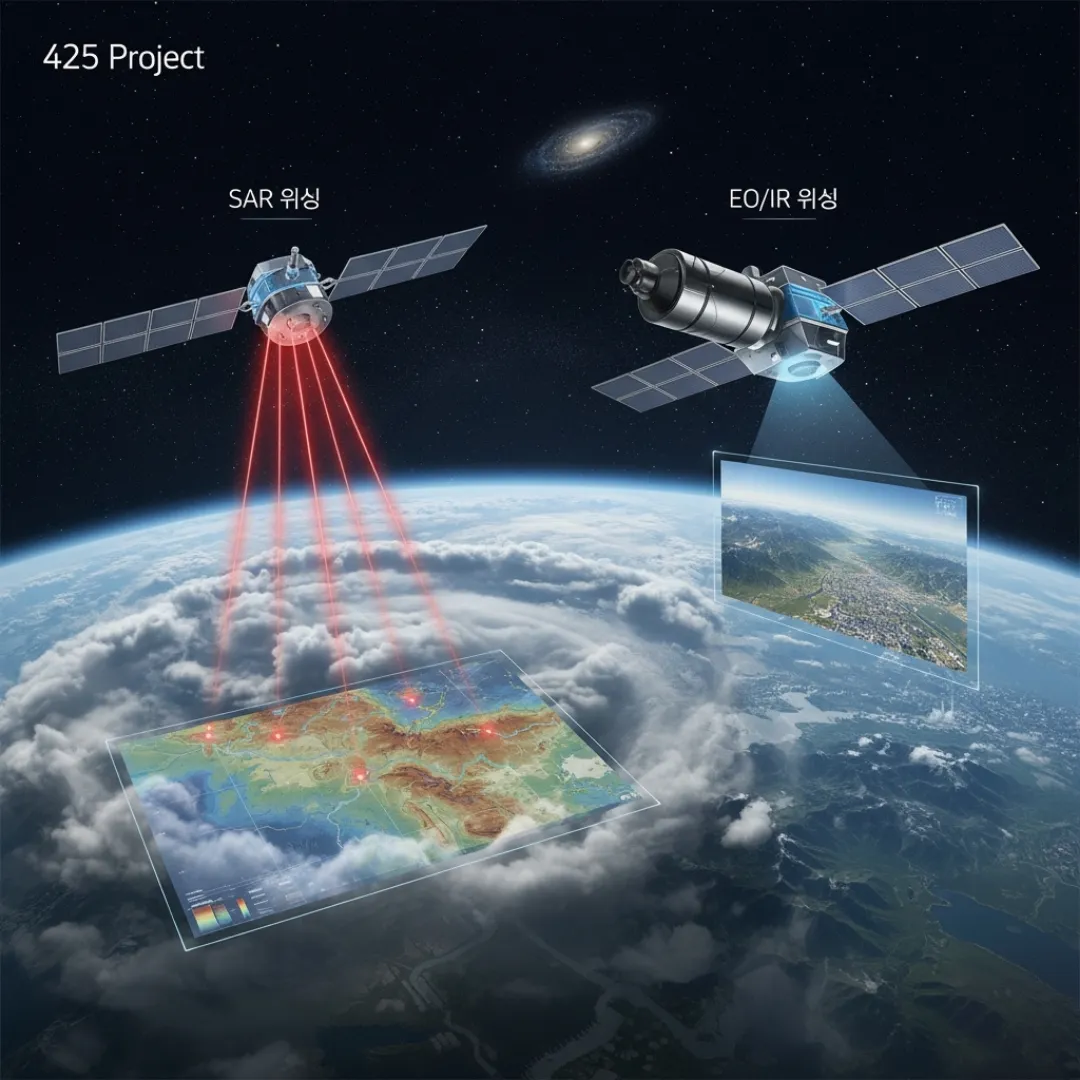 이처럼 서로 다른 장단점을 가진 5기(SAR 4기, EO/IR 1기)의 위성이 하나의 팀처럼 움직이면, 어떤 상황에서도 우리가 원하는 목표물을 놓치지 않고 감시할 수 있는 완벽한 시스템이 구축됩니다. 이것이 바로 425 사업의 핵심입니다.