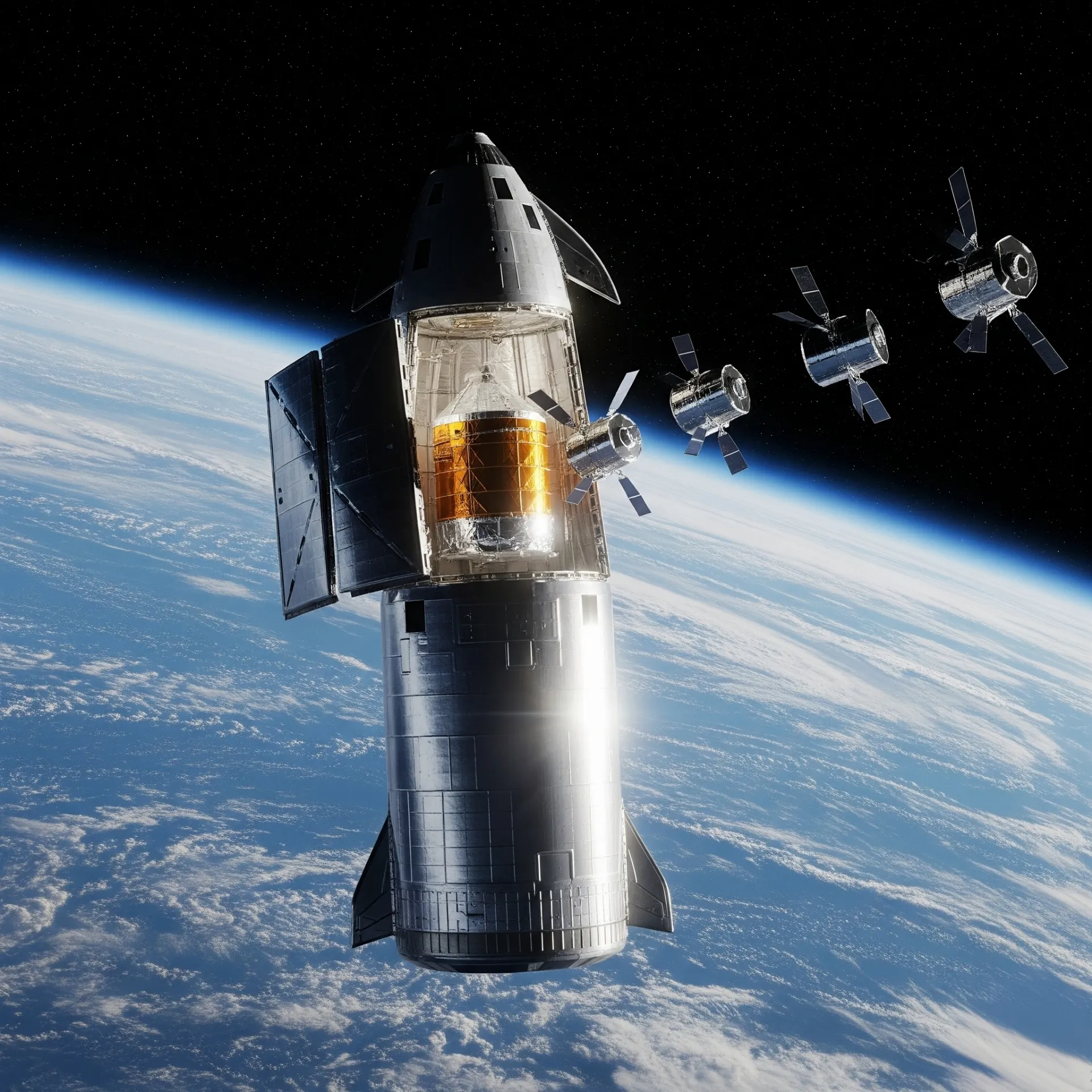 - 첫 화물칸 개방 및 모의 위성 사출: 이번 비행의 가장 큰 관전 포인트 중 하나입니다. 처음으로 스타십의 거대한 화물칸(페이로드 베이) 문을 열고, 8개의 스타링크 위성 모사체를 우주 공간에 배치하는 임무를 수행합니다. 이는 스타십이 위성이나 보급품을 실어 나르는 거대한 우주 화물선으로서의 핵심 기능을 할 수 있는지 보여주는 첫 번째 실증 시험입니다.