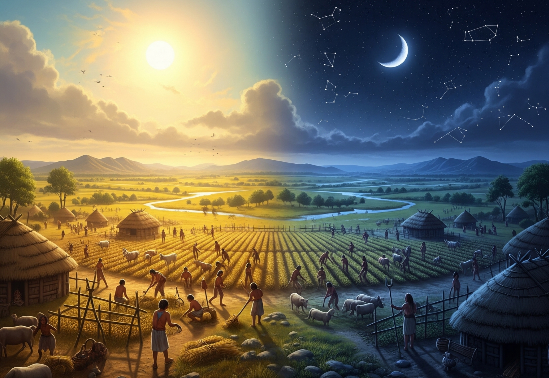 - 일 년: 지구가 태양 주위를 한 바퀴 공전하는 주기로, 계절의 변화를 통해 파악했습니다. 농경 사회에서 이는 한 해 농사의 성패를 가르는 파종과 수확 시기를 결정하는 매우 중요한 생존의 지표였습니다.