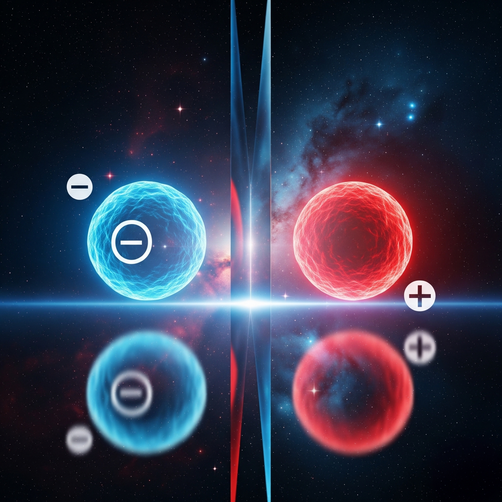상상만 해도 아찔합니다. 우리가 탄 물질 우주선이 반물질 우주의 대기, 즉 반입자로 이루어진 공기와 만나는 순간, 우주선 표면부터 격렬한 쌍소멸 반응이 일어나기 시작할 것입니다. 우주선은 순식간에 엄청난 빛과 에너지로 변하며 사라져 버릴 겁니다. 마찬가지로, 만약 반물질 우주인이 우리 우주로 온다면 그들 역시 우리 세상의 공기와 닿는 순간 소멸하고 말 것입니다.