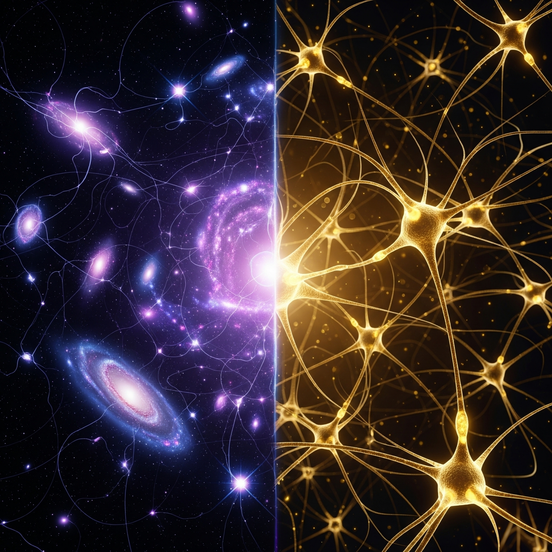 2020년, 이탈리아의 천체물리학자 프랑코 바차와 신경외과 의사 알베르토 펠레티는 국제 학술지 프런티어 인 피직스(Frontiers in Physics)에 매우 흥미로운 연구 결과를 발표했습니다. 이들은 우주 거대 구조 시뮬레이션과 실제 인간의 소뇌 및 대뇌 피질 단면을 비교 분석하여, 두 시스템이 단순한 외형적 유사성을 넘어 수학적으로도 닮아있다는 사실을 밝혀냈습니다.