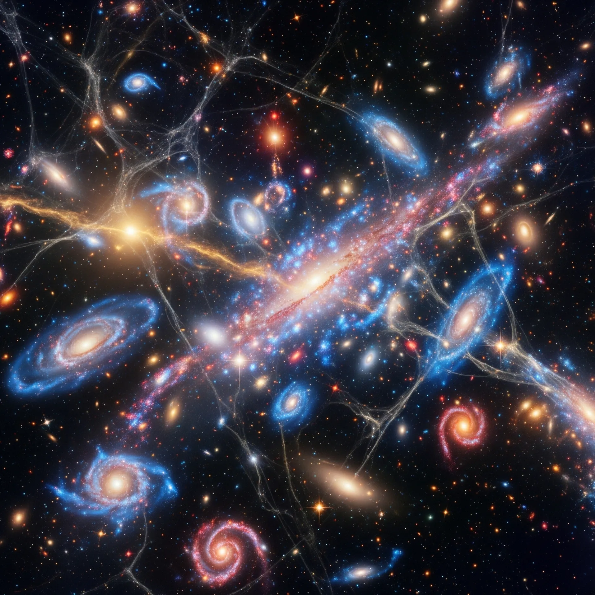 - 우주 구조의 씨앗: 인플레이션은 우주가 왜 거대한 규모에서 균일한지를 설명하는 동시에, 오늘날 우리가 보는 은하와 은하단의 기원까지 설명합니다. 인플레이션 시기, 텅 빈 공간에서는 미세한 양자 요동으로 에너지의 출렁임이 있었습니다. 이 미세한 요동이 인플레이션을 통해 거대한 규모로 확대되었고, 이것이 씨앗이 되어 물질이 모여 별과 은하, 그리고 우주의 거대 구조를 형성하게 된 것입니다.