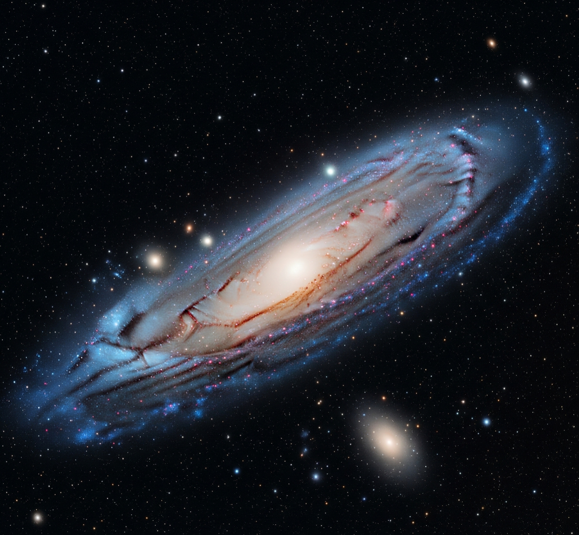 안드로메다 은하는 우리은하보다 훨씬 거대합니다. 우리은하가 약 1000억 개에서 4000억 개의 별을 품고 있다면, 안드로메다 은하는 그 두 배가 넘는 약 1조 개의 별을 가진 것으로 추정됩니다.