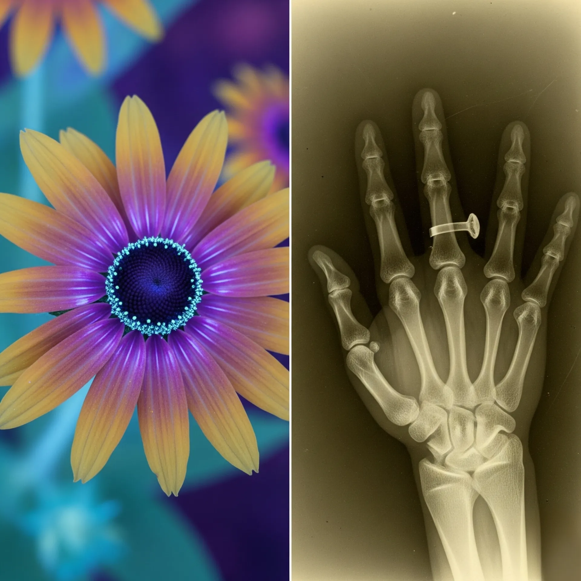 적외선 반대편에는 자외선과 엑스선이 있습니다. 자외선은 우리에게 비타민 D를 선물하지만, 때로는 피부 세포를 손상시키기도 합니다. 벌과 같은 곤충들은 자외선을 볼 수 있어, 꿀을 품은 꽃을 더 쉽게 찾아냅니다.